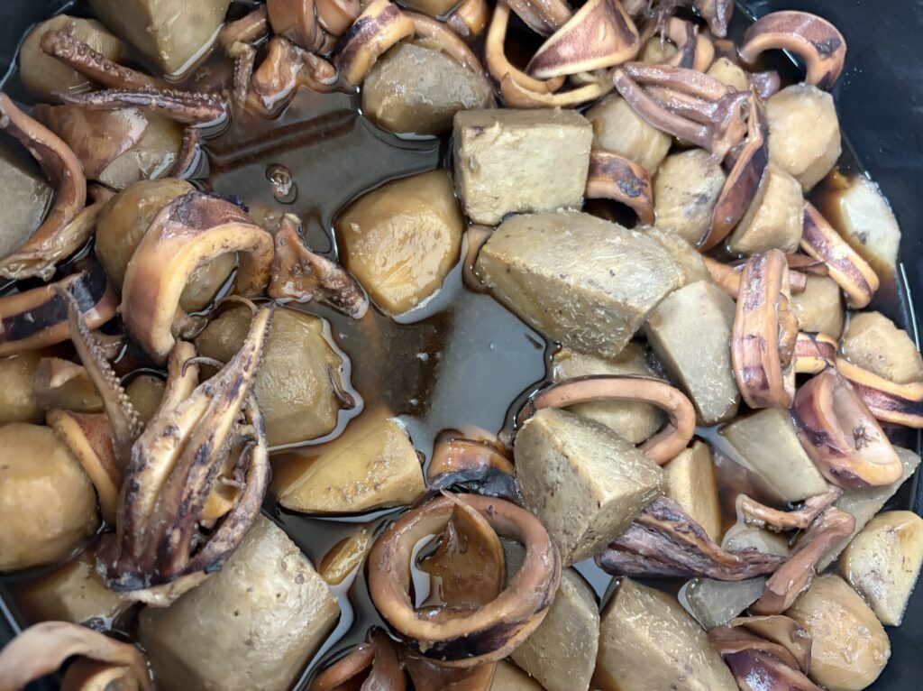 里芋とイカの煮物に至っては、前日に完成し一晩しみしみのベスコンでスタンバイ。