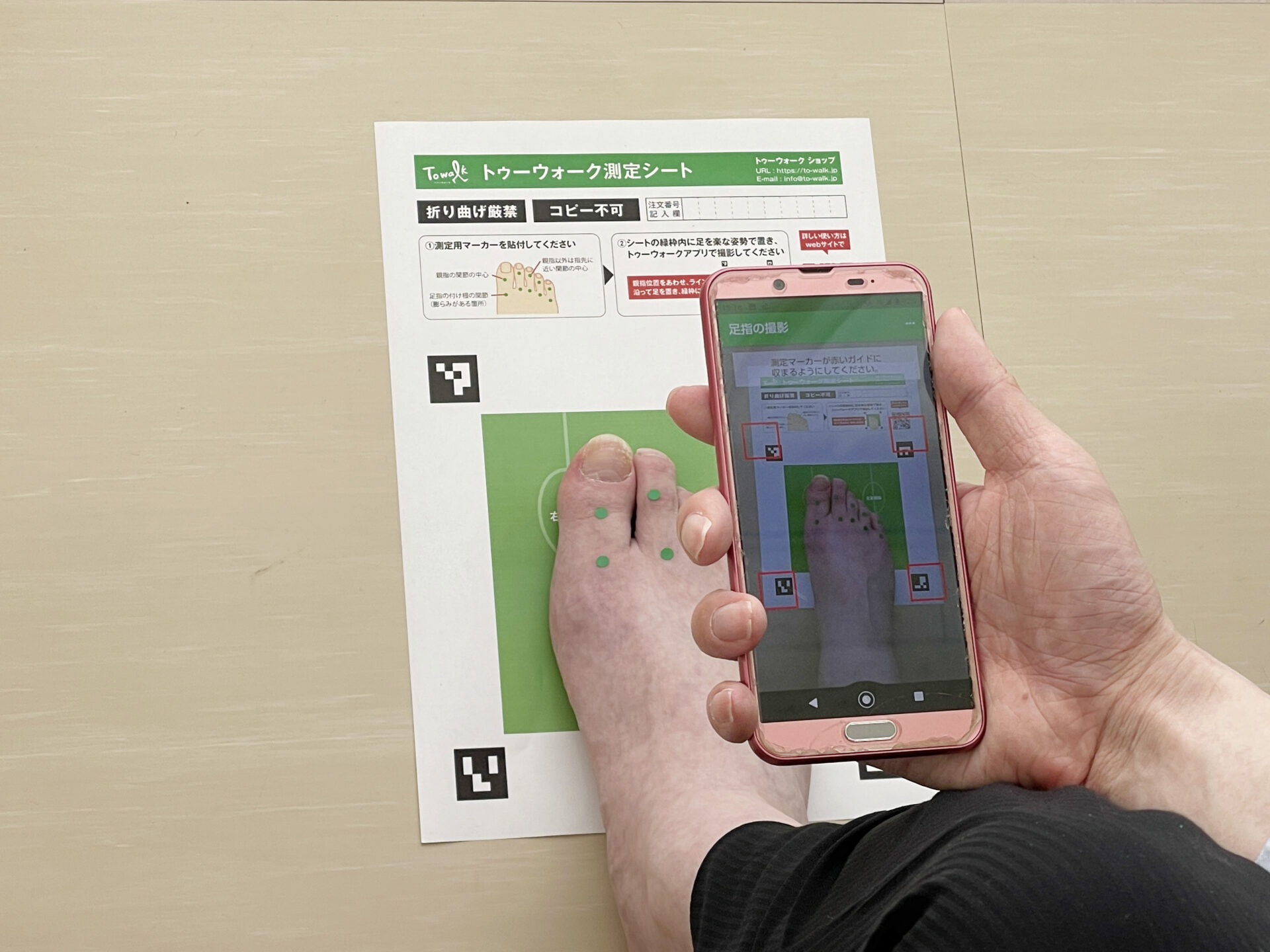 アプリでは、足指を撮影して補正具作成に必要な画像を取得します。